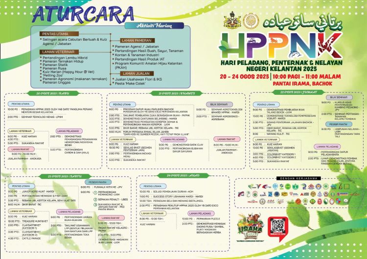 Pelbagai pengisian acara, program dan aktiviti disusun sepanjang HPPNK 2025 antaranya, pameran agensi dan jabatan serta syarikat berkaitan kerajaan(GLC), syarikat swasta yang berkaitan dengan sektor pertanian, penternakan dan perikanan serta pameran ternakan di Laman Veterinar yang menghimpunkan lebih 220 ekor lembu sado selain dari ternakan lain.