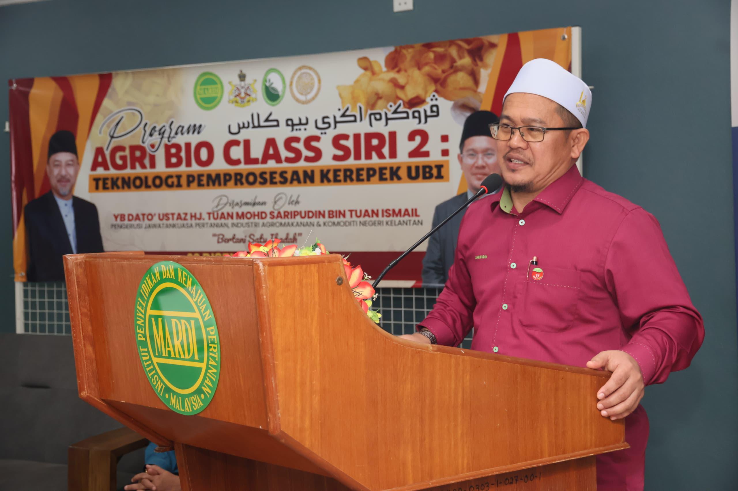 PASIR PUTEH, 8 Disember - Pendekatan teknologi tinggi dalam pemprosesan kerepek kini menjadi keperluan mendesak bagi memastikan pengusaha tempatan kekal berdaya saing dalam pasaran semakin mencabar, tegas Exco Pertanian, Industri Agromakanan dan Komoditi YB Dato’ Tuan Mohd Saripudin Tuan Ismail.
