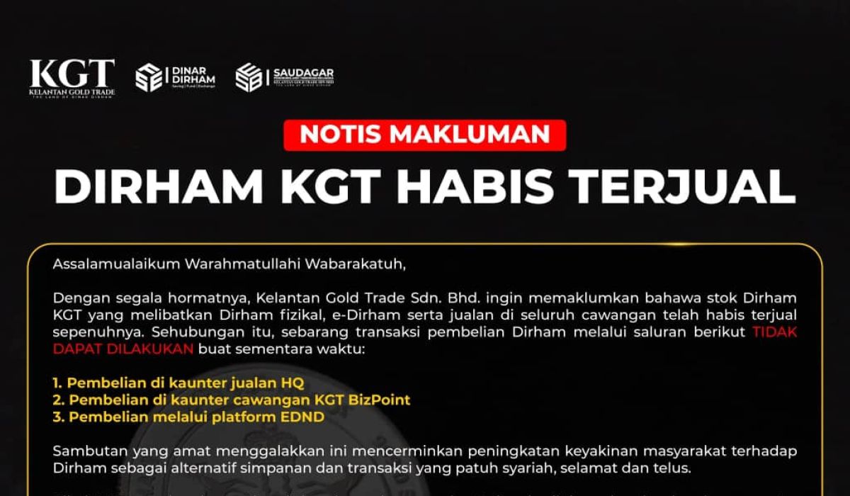 Stok Dirham habis terjual, KGT tangguhkan sementara transaksi pembelian