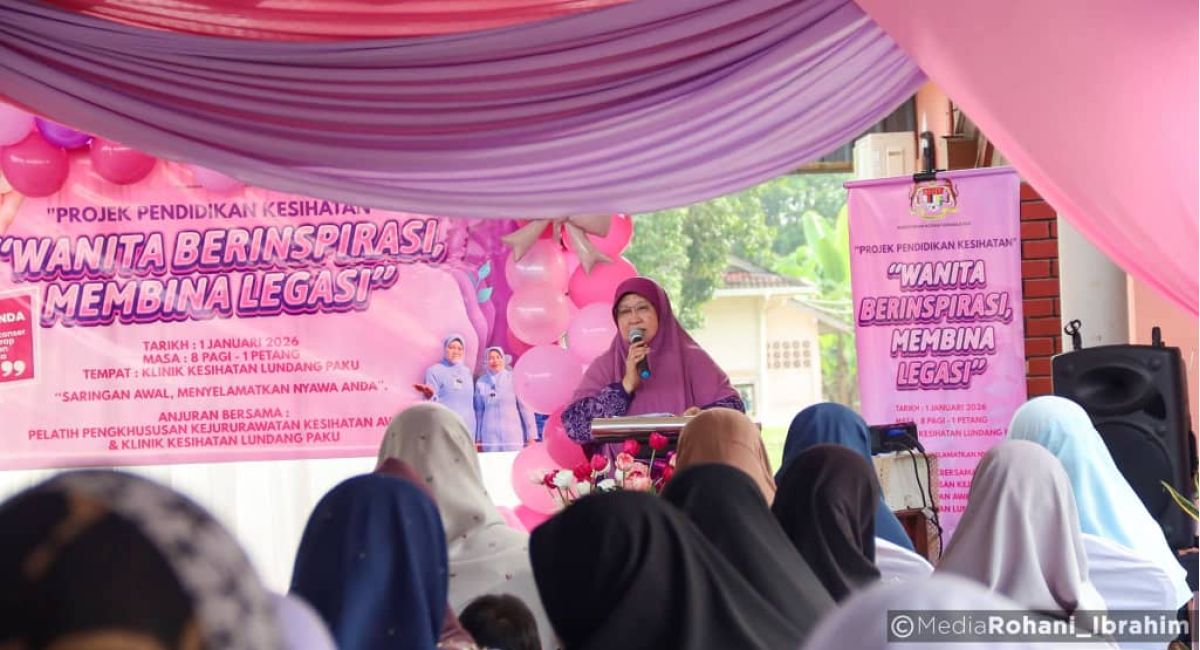 Terdahulu, Dato’ Rohani merasmikan Program Pendidikan Kesihatan Wanita: Saringan Kanser Serviks dan Kanser Payudara yang berlangsung di Klinik Kesihatan Lundang Paku.