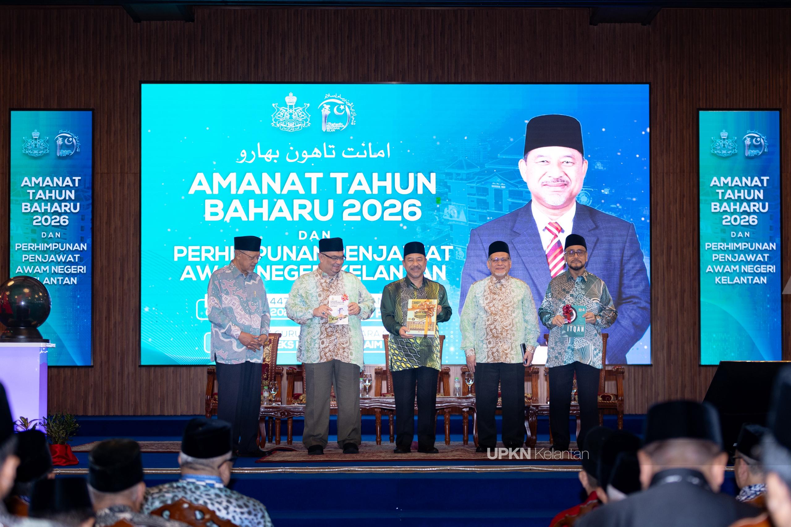 KOTA DARULNAIM, 8 Januari – Menteri Besar Kelantan YAB Dato’ Panglima Perang Ustaz Dato’ Mohd Nassuruddin Daud melancarkan tiga naskhah penting sebagai inisiatif strategik Kerajaan Negeri Kelantan sempena Amanat Tahun Baharu 2026 dan Perhimpunan Penjawat Awam Negeri Kelantan, di Dewan Tok Guru Dato’ Bentara Setia, Kota Darulnaim, hari ini.