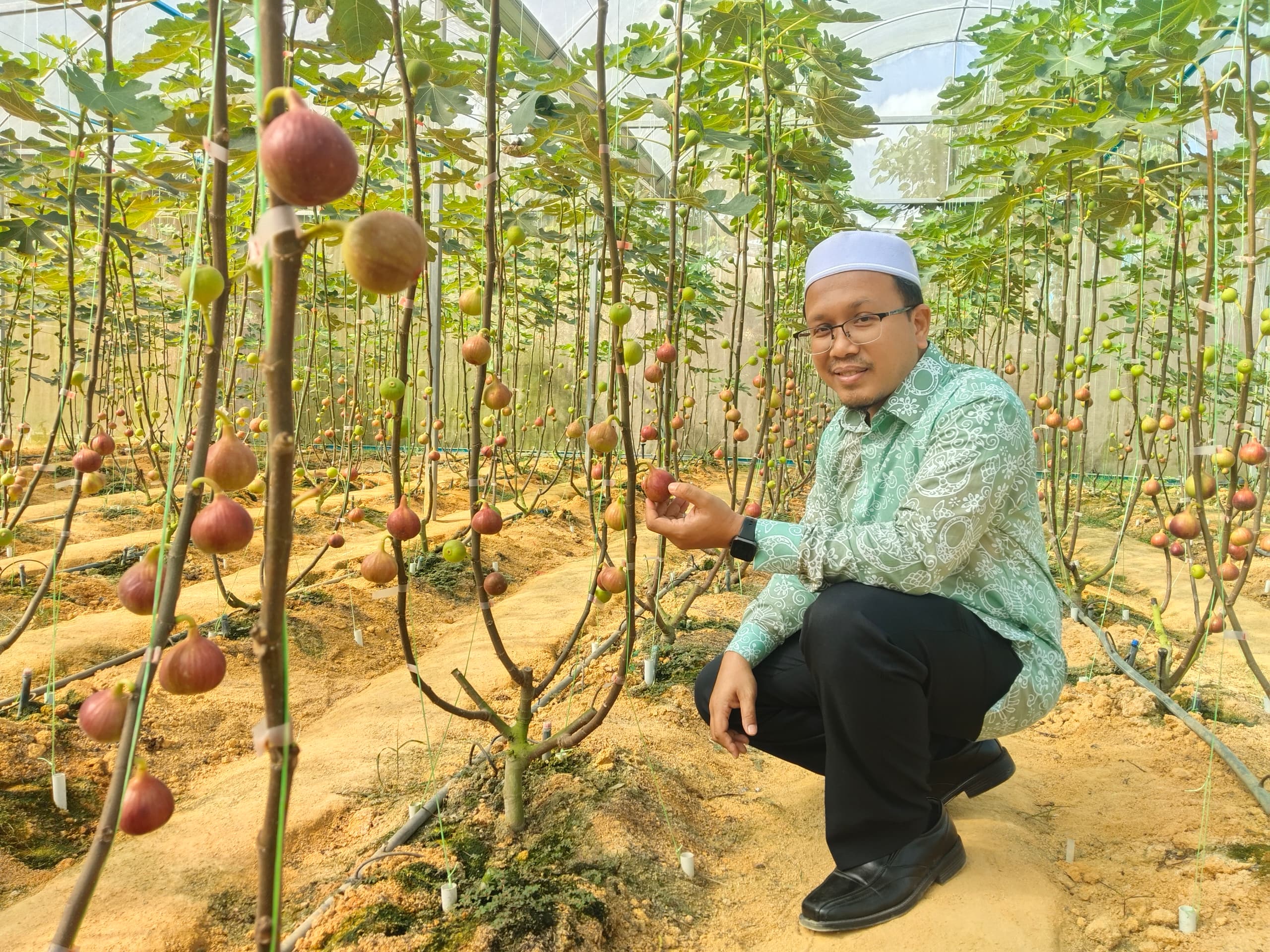 Kebun tersebut diusahakan oleh Nur Taufiq Yusuf, 36, seorang mantan jurugambar profesional yang kini memilih haluan baharu sebagai petani moden dengan menumpukan penanaman pokok tin, khususnya varieti Masui Dauphine (MDA) dan Constantine De Algerie (CDA).