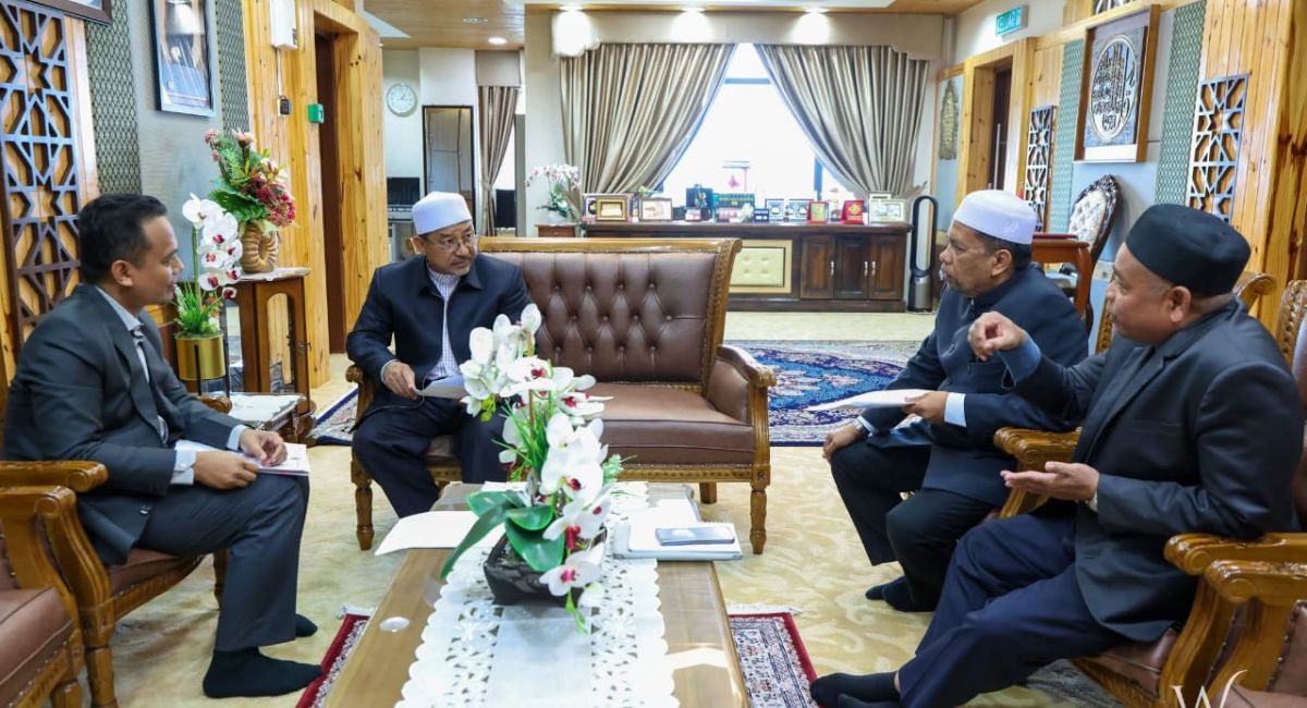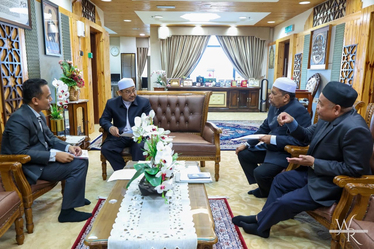 Exco Pendidikan, Pengajian Tinggi, Teknologi Hijau, Digital dan Inovasi YB Dato' Wan Roslan Wan Hamat bersama Pengarah YIK Shamsul Abu Bakar mengadakan pertemuan dengan Menteri Besar YAB Dato’ Panglima Perang, Ustaz Dato' Mohd Nassuruddin Daud bagi memohon persetujuan berkaitan penerbitan Mushaf Al-Quran Kelantan Darul Naim.