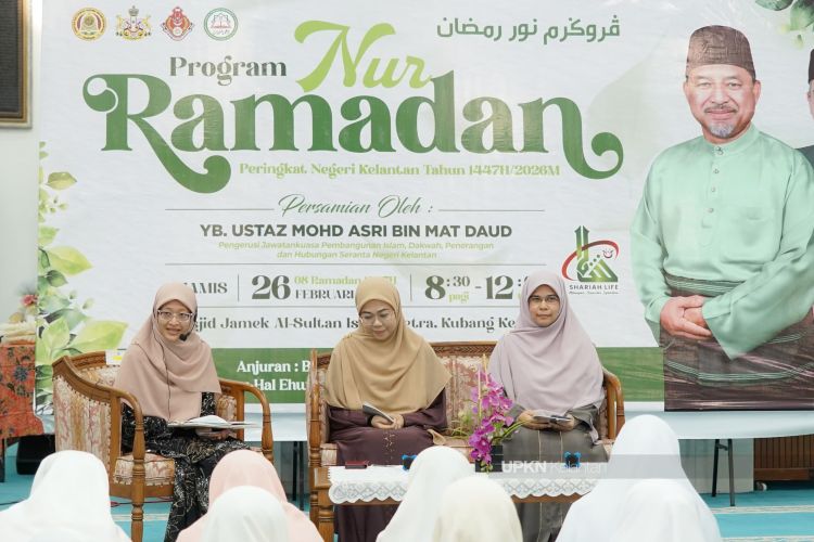 KUBANG KERIAN, 27 Februari – Seramai 2,000 muslimat dari seluruh negeri termasuk dari Gua Musang dan Jeli hadir memeriahkan Program Nur Ramadan Wanita Peringkat Negeri Kelantan 1447H/2026M.