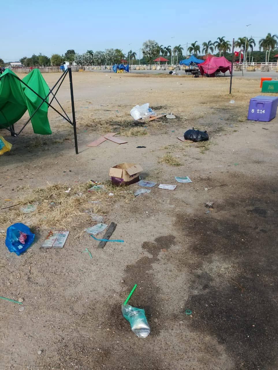 Sehubungan itu, beliau menyeru orang ramai agar membuang sampah ke dalam tong yang disediakan. Sekiranya tong sampah penuh, mereka digalakkan melonggokkan sisa di tepi tong bagi memudahkan syarikat konsesi membuat pungutan atau membawa pulang bungkusan serta sisa juadah masing-masing.