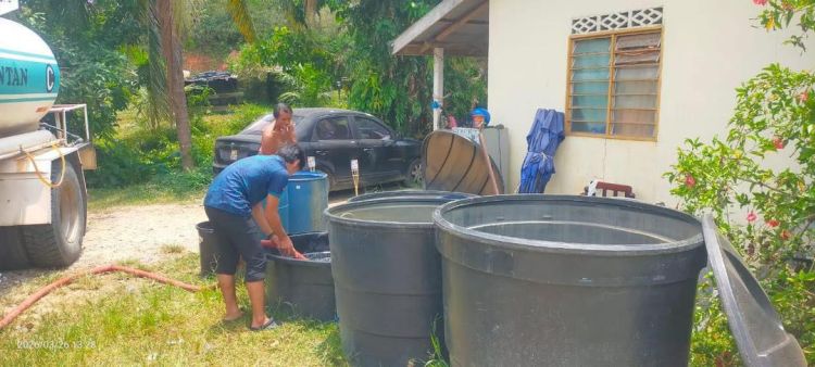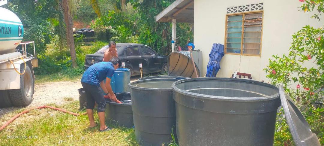Penduduk yang terjejas akibat musim kemarau berlarutan dan faktor geografi berbukit kini menerima bekalan air melalui pengoperasian lori tangki AKSB secara berkala setiap dua hari ke lokasi kritikal.