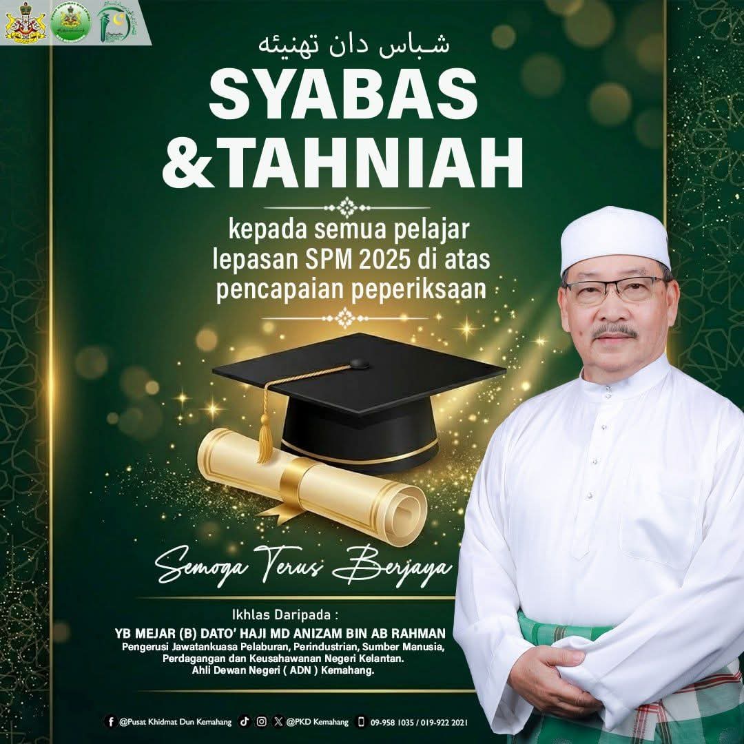 Exco Pelaburan, Perindustrian, Sumber Manusia, Perdagangan dan Keusahawanan YB Mejar (B) Dato’ Md Anizam Ab Rahman berkata demikian ketika merakamkan ucapan tahniah kepada semua pelajar lepasan Sijil Pelajaran Malaysia (SPM) 2025.