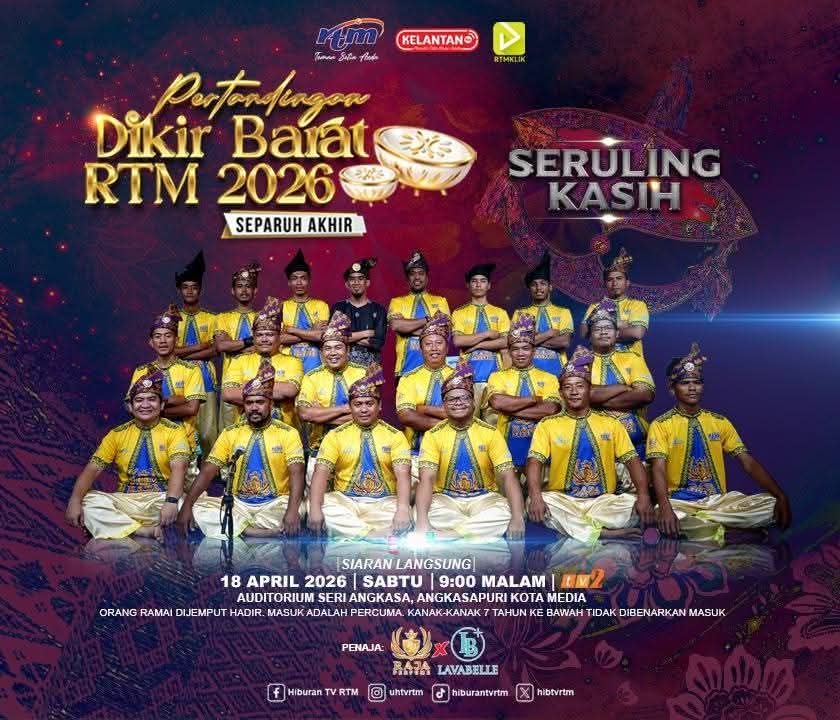 TUMPAT, 14 April — Pasukan Dikir Barat Seruling Kasih terus mengharumkan nama Kelantan apabila berjaya melangkah ke pentas separuh akhir Pertandingan Dikir Barat Radio Televisyen Malaysia (RTM) 2026.