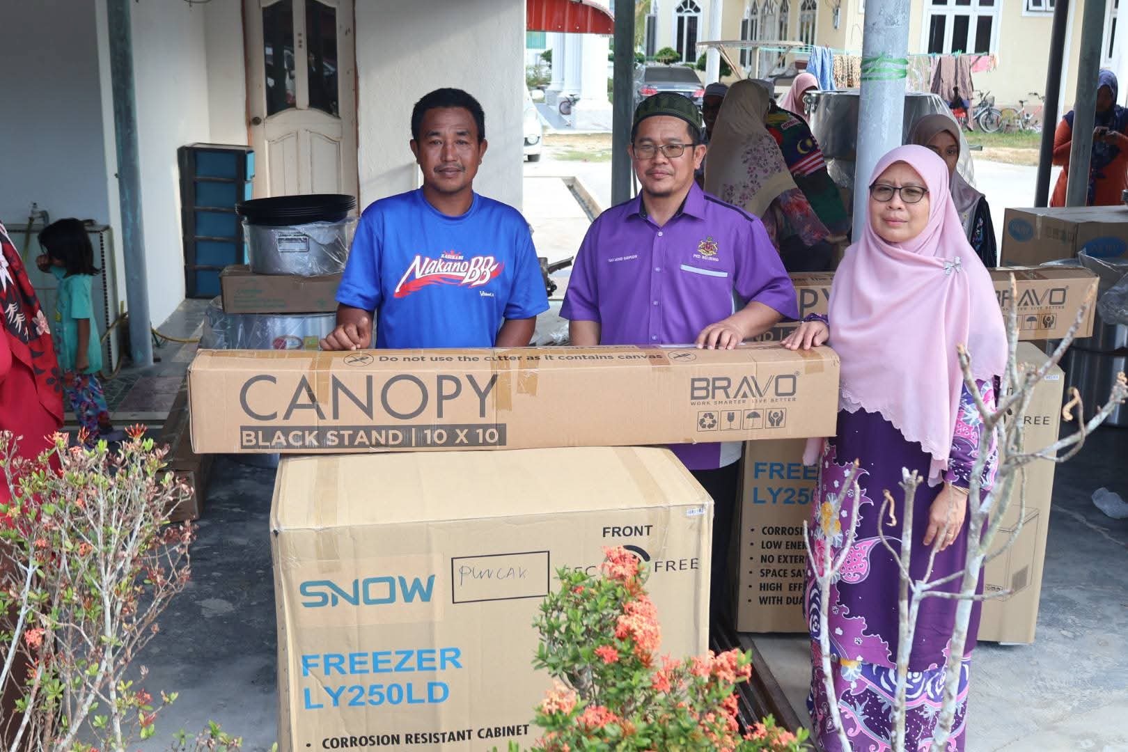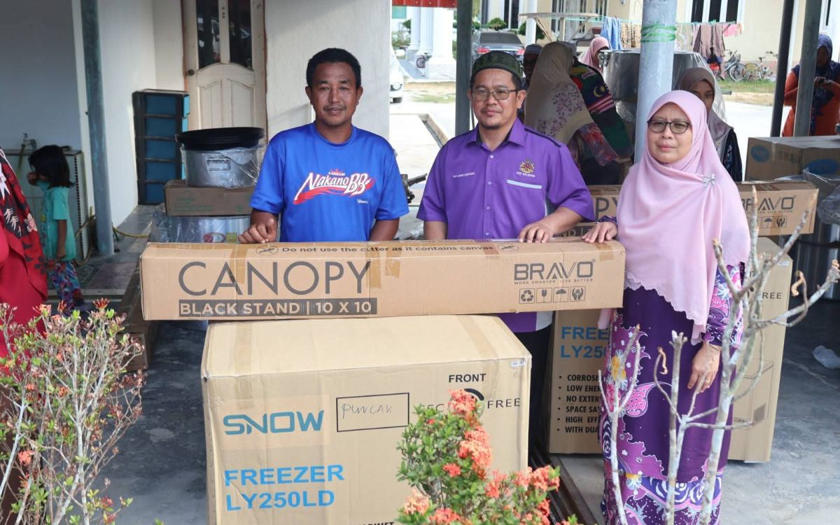 Antara bantuan yang disalurkan termasuk peralatan perniagaan seperti periuk, peti sejuk beku (freezer), talam dan khemah bagi menyokong keperluan operasi harian usahawan.