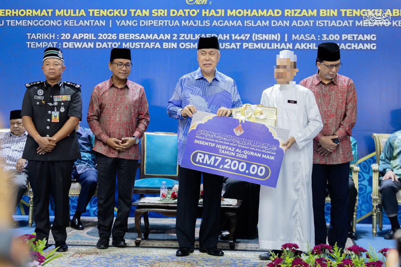 Dalam perkembangan berkaitan, beliau berkata, Program Intensif Huffaz MAIK menyediakan insentif sebanyak RM7,200 setahun atau RM600 sebulan kepada setiap penerima.