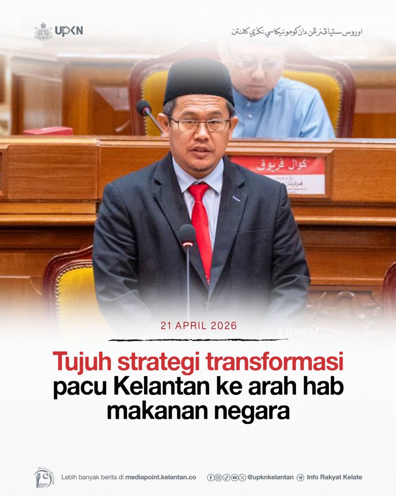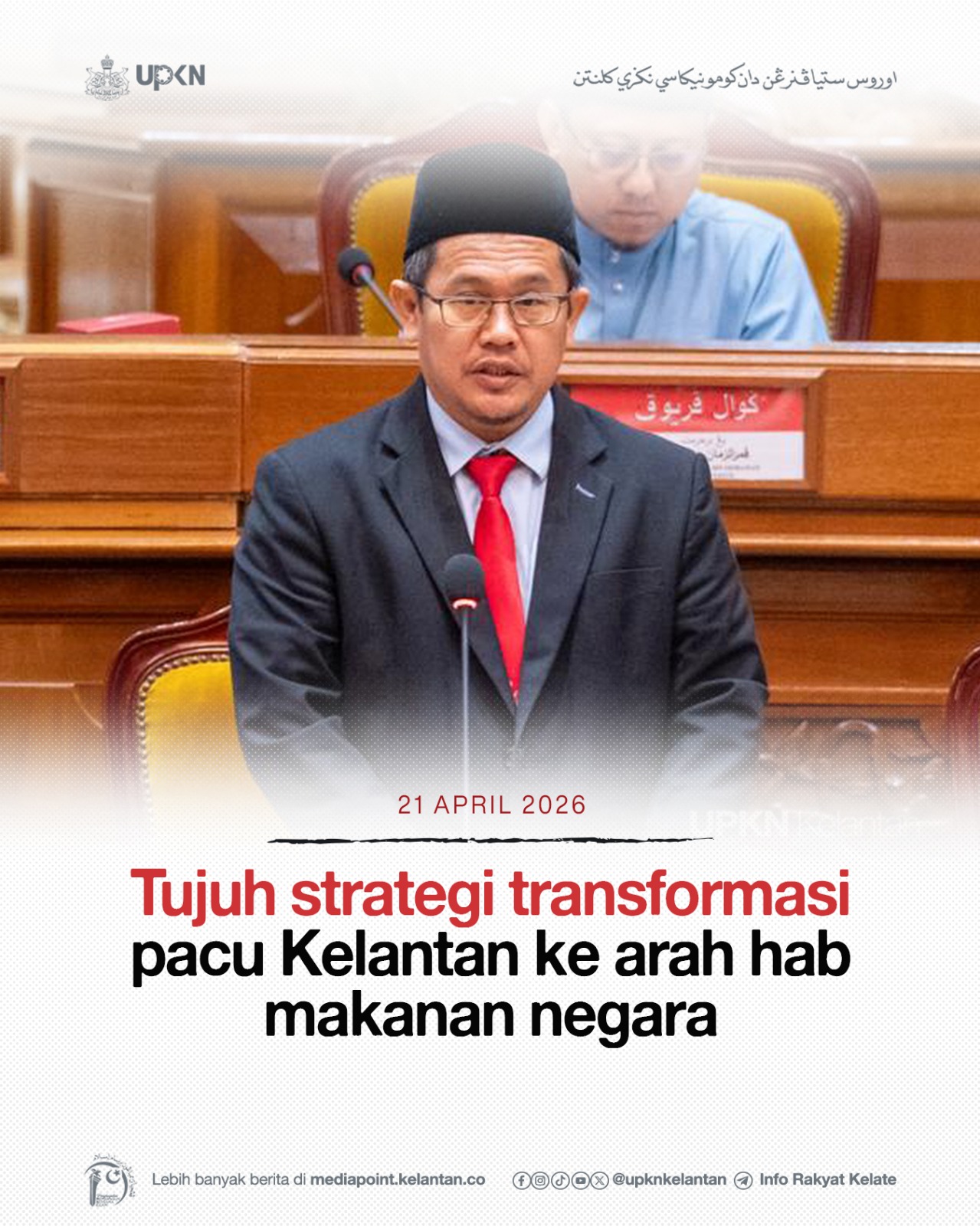 KOTA DARULNAIM, 21 April — Kerajaan Negeri Kelantan melaksanakan tujuh strategi transformasi pertanian secara menyeluruh meliputi pengoptimuman tanah, pemerkasaan teknologi moden serta pembangunan modal insan petani bagi memperkukuh kedudukan negeri sebagai hab makanan utama negara.