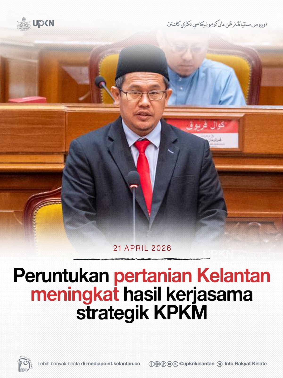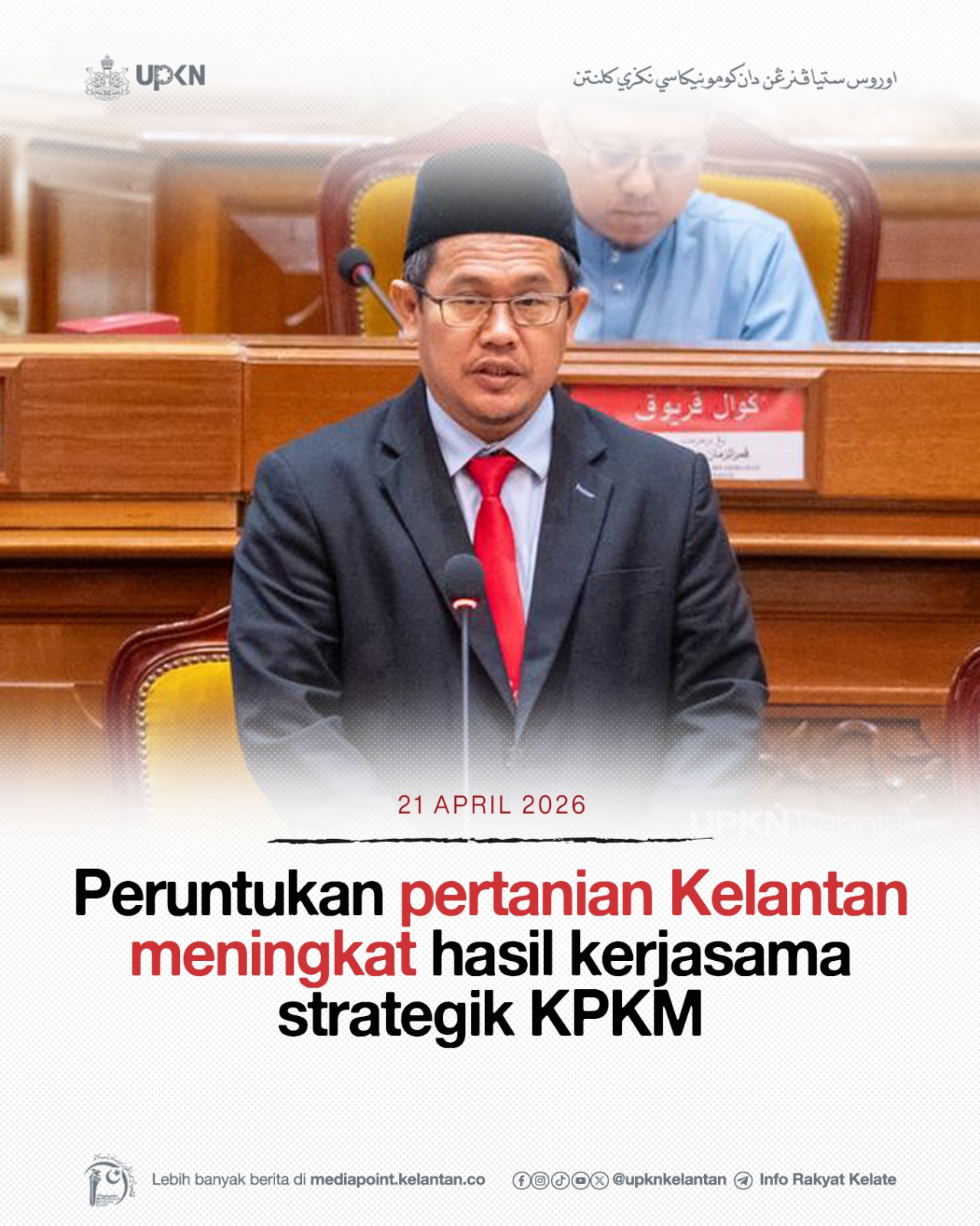 KOTA DARULNAIM, 21 April — Peningkatan peruntukan sektor pertanian Kelantan yang memberangsangkan hasil kerjasama strategik dengan Kementerian Pertanian dan Keterjaminan Makanan (KPKM) terus memperkukuh agenda keterjaminan makanan negeri, sekali gus mempercepat usaha menjadikan Kelantan sebagai hab makanan utama negara.
