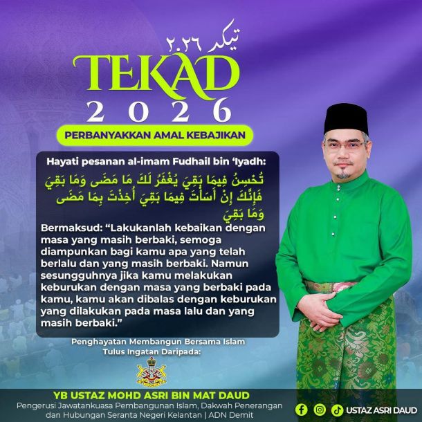 Exco Pembangunan Islam, Dakwah, Penerangan dan Hubungan Seranta YB Mohd Asri Mat Daud memaklumkan bahawa Kerajaan Negeri Kelantan melalui portfolio yang dipengerusikannya, komited memperkukuh Penghayatan Membangun Bersama Islam (PMBI) secara berstrategik sebagai teras pembangunan negeri menjelang Tahun Baharu 2026.