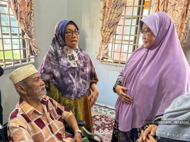 Exco Kebajikan, Pembangunan Keluarga dan Wanita YB Dato' Rohani Ibrahim menziarahi keluarga pelajar tingkatan satu SMK Tanjong Mas Allahyarhamah Nur Fatimatul Hawa Mohd Azaudin, mangsa kemalangan di kawasan sekolah, Ahad lalu.