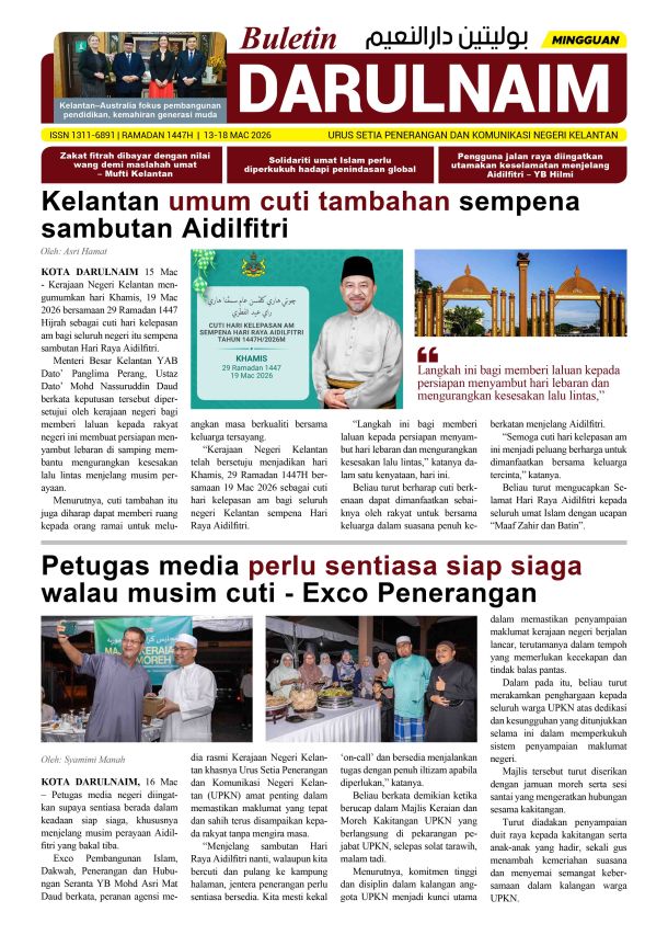 Kompilasi berita- berita semasa Buletin Darulnaim, 13-18 Mac 2026.