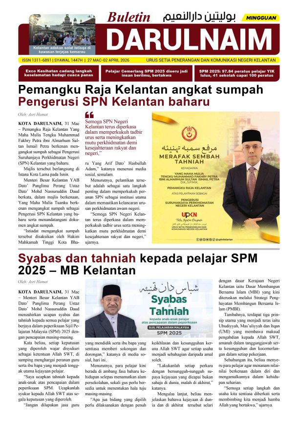 Kompilasi berita- berita semasa Buletin Darulnaim, 27 Mac- 2 April 2026